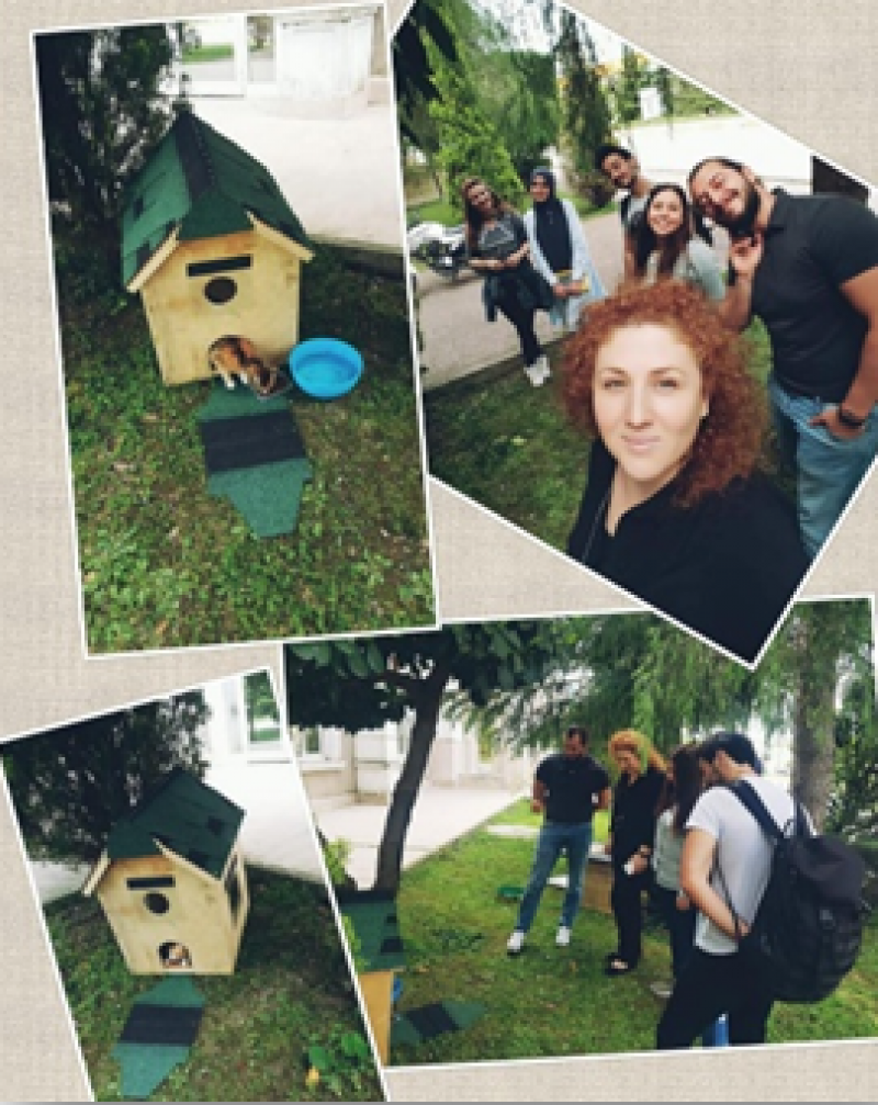 Sakarya ili çevresinde terkedilmiş veya doğduğundan beri hayatta kalmaya çalışan sayısız köpek bulunmakta. Tüm bu dostlarımıza yardımcı olmak hepimizin bireysel görevi düşüncesine sahip olduğumuzdan onlar için bir de topluluğumuz adına bir şeyler yapmamız gerektiğini düşündük. İlk olarak mamaları kapıp dostlarımızın yoğunlukta olduğu bölgelere giderek beslememizi yaptık. Hepsinin gözlerindeki minnettarlığa şahit olmak bizim için fazlasıyla yeterliydi. Ardından elimize çekiç ve çivi alıp kampüs içinde yine Sakarya çevresindeki dışarda yaşayan hayvanlar için kulübe yapımına destek verdik. Daha önce kullanılan eski tahtalar yeniden kullanılır hale getirilip boyandı. Sonuç olarak bizim için oldukça yorucu fakat gurur verici bir gün oldu.